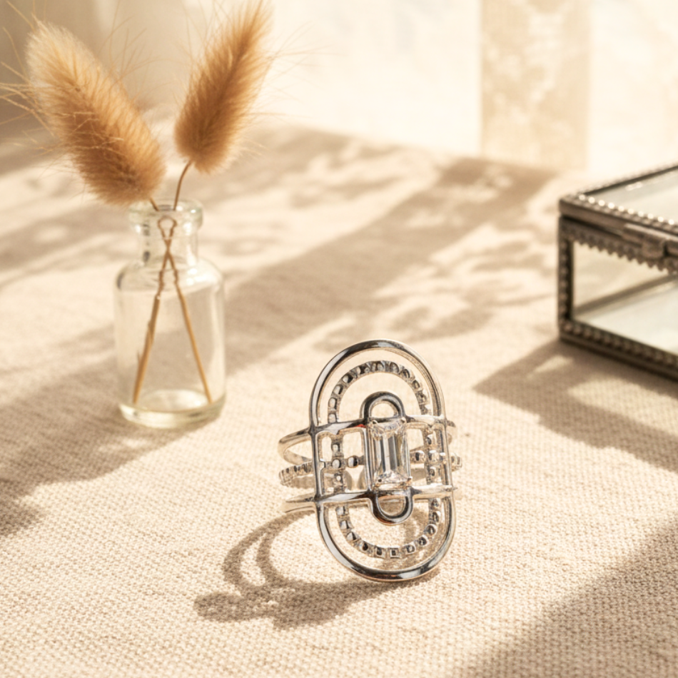 Bague argentée femme style vintage – Acier inoxydable ajustable