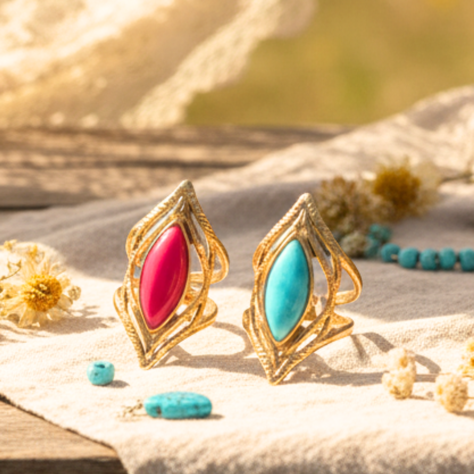 Bague dorée femme – Pierre turquoise ou fuchsia, acier inoxydable ajustable
