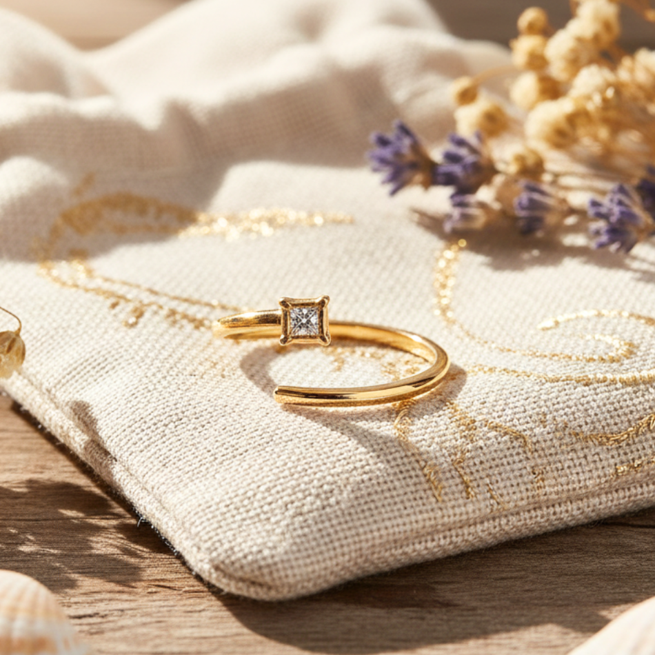 Bague dorée femme ajustable – Acier inoxydable avec zircon carré
