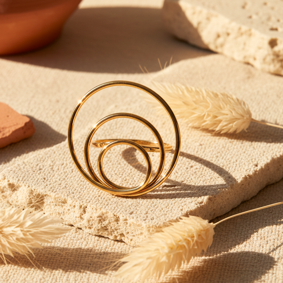 Bague dorée femme originale – Acier inoxydable ajustable, design graphique