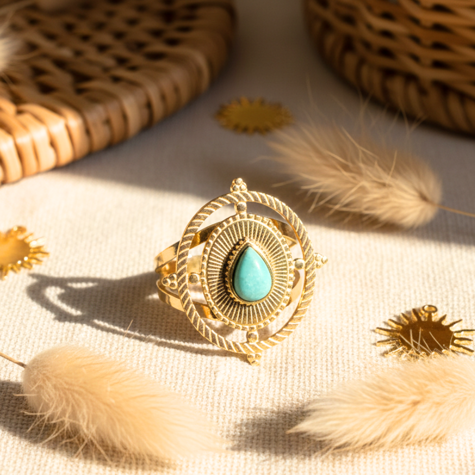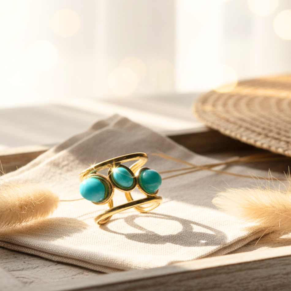 Bague ajustable en acier inoxydable doré avec pierre turquoise naturelle Apportez une touche de bleu...