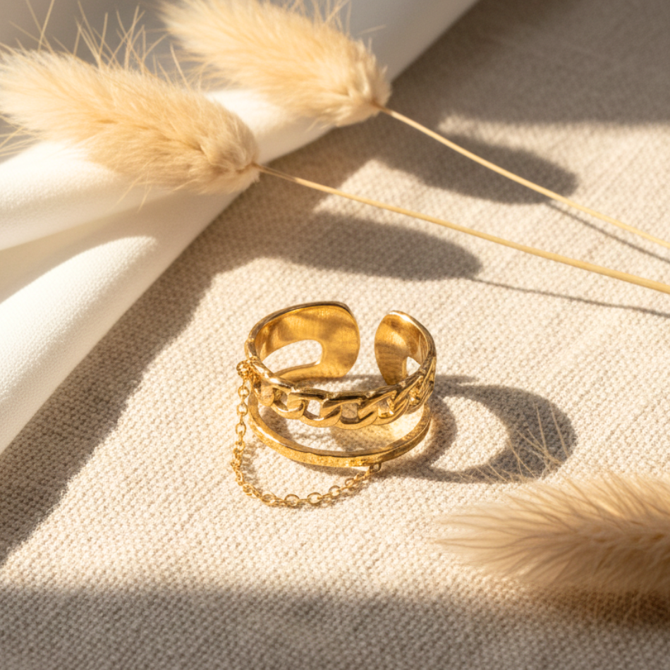 Bague chaîne dorée femme – Acier inoxydable ajustable