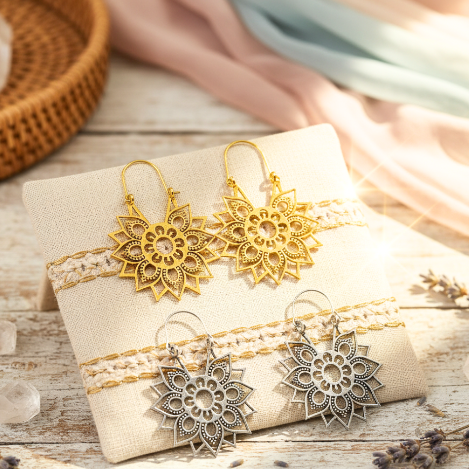 Boucles d’oreilles mandala acier inoxydable – Créoles dorées ou argentées pour femme