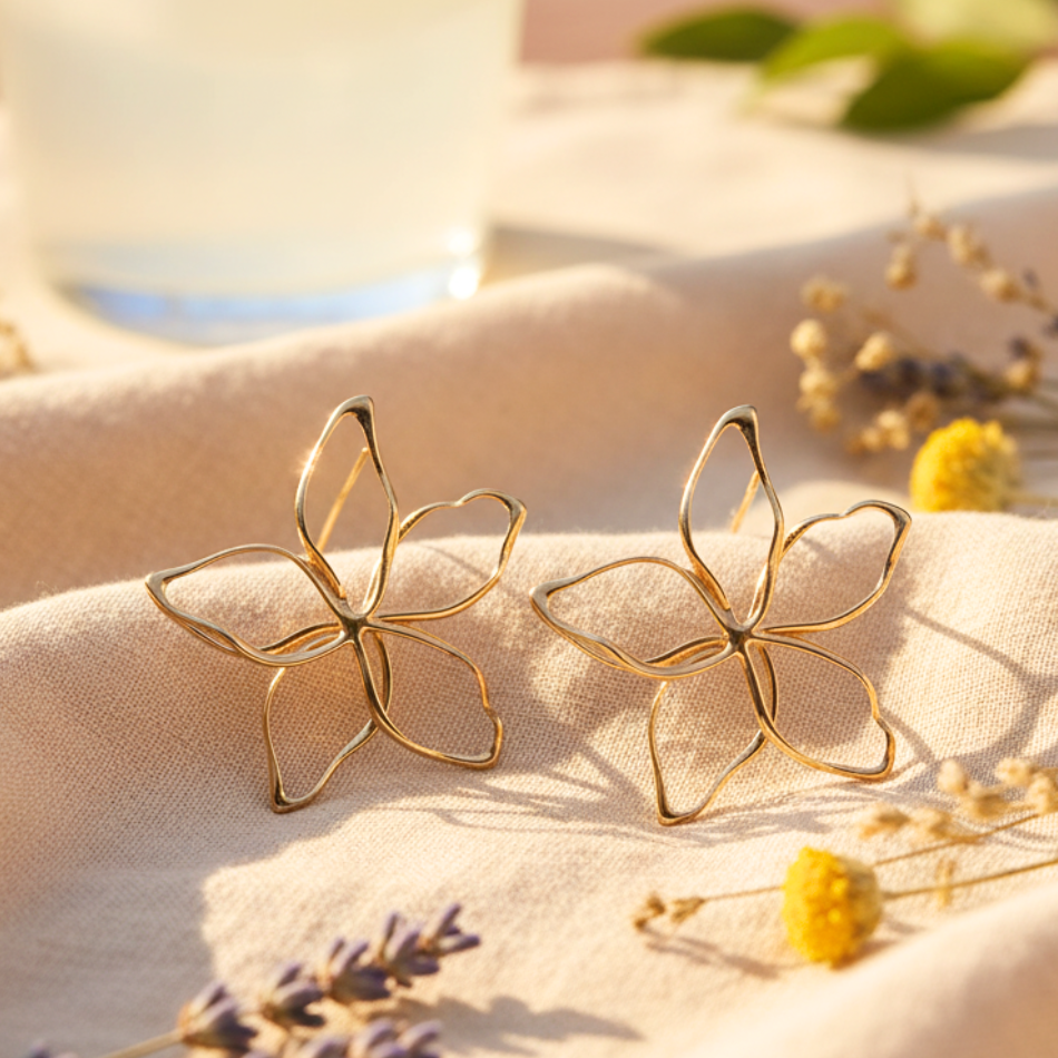 Boucles d’oreilles fleur XXL dorées – Acier inoxydable léger et tendance