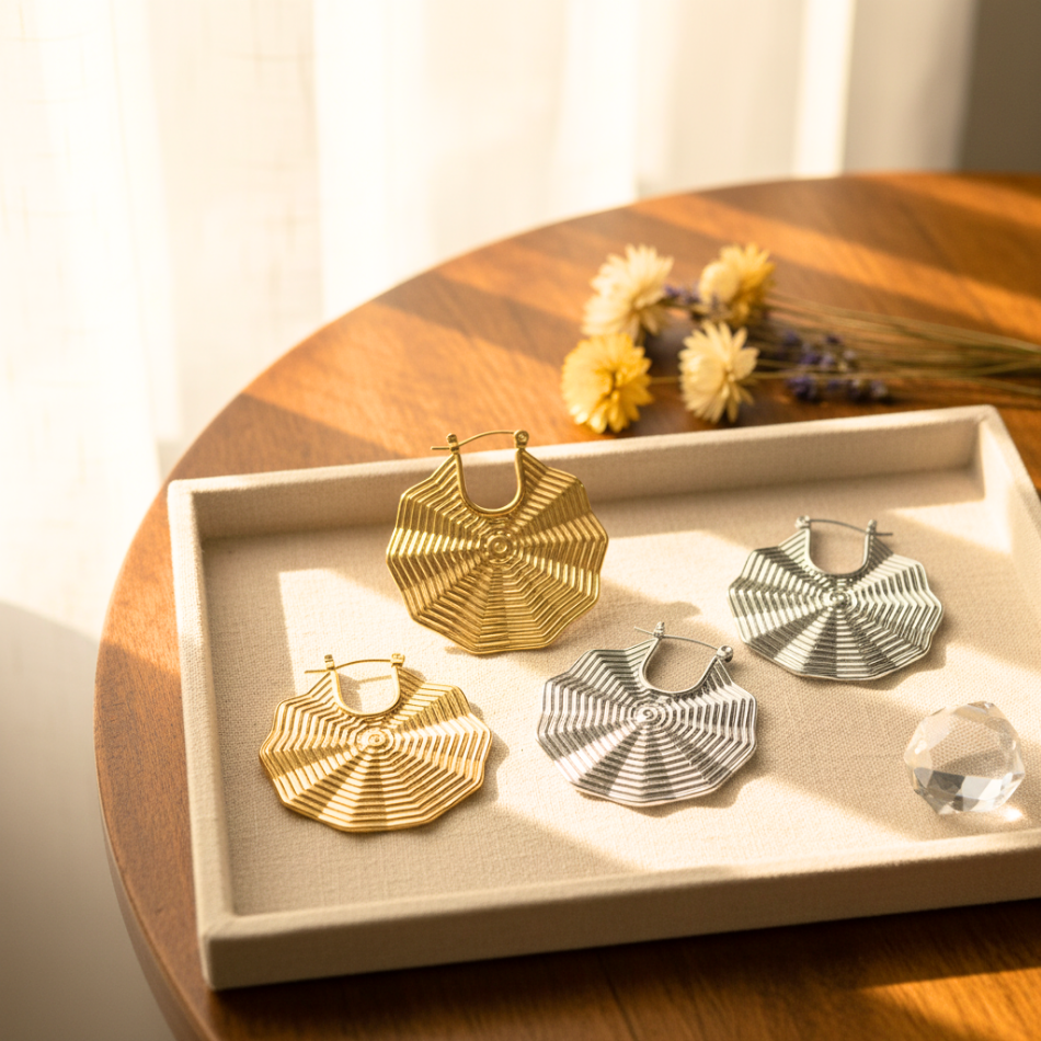 Créoles larges ajourées en acier inoxydable doré ou argenté – Boucles d’oreilles bohèmes chic