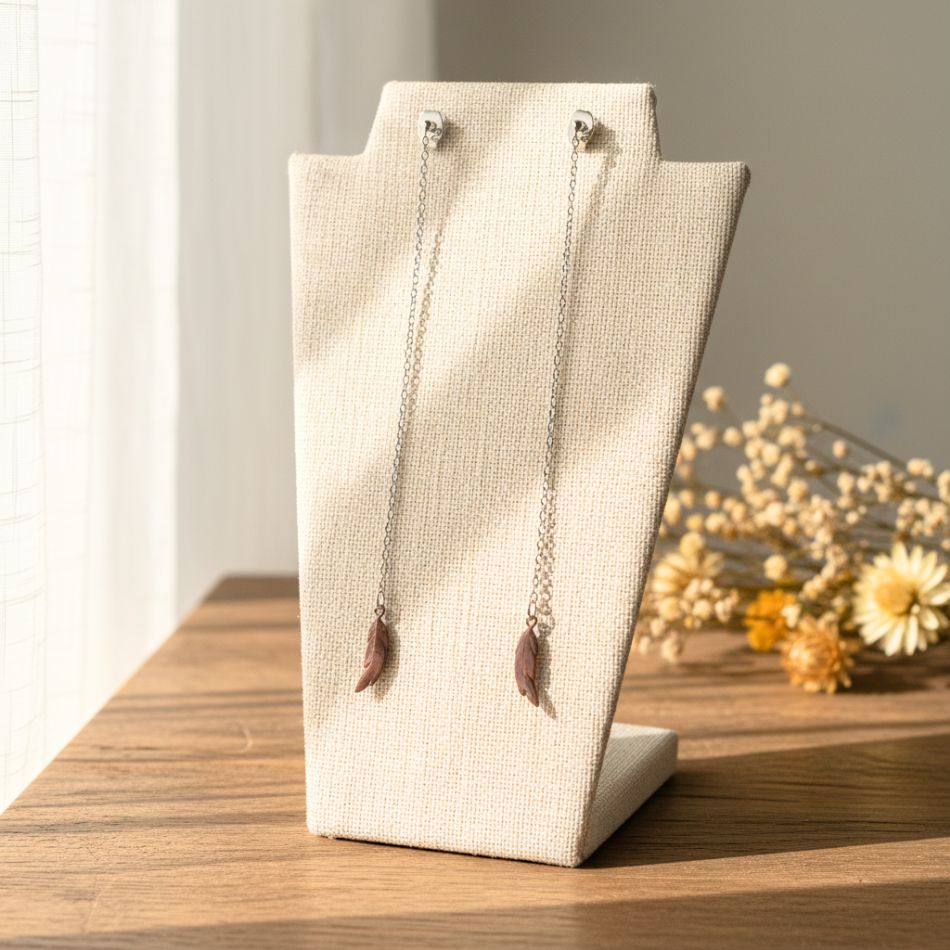 Boucles d'oreilles chainette plume en acier inoxydable argenté