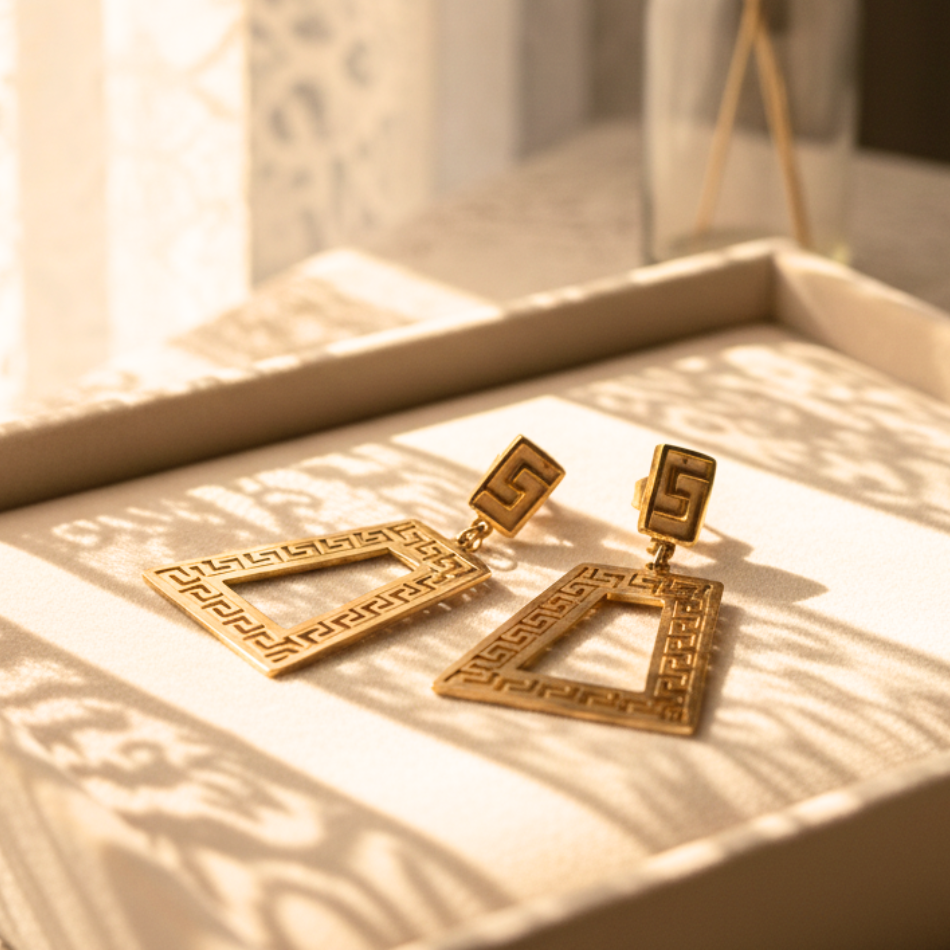 Boucles d’oreilles pendantes dorées géométriques acier inoxydable style grec chic