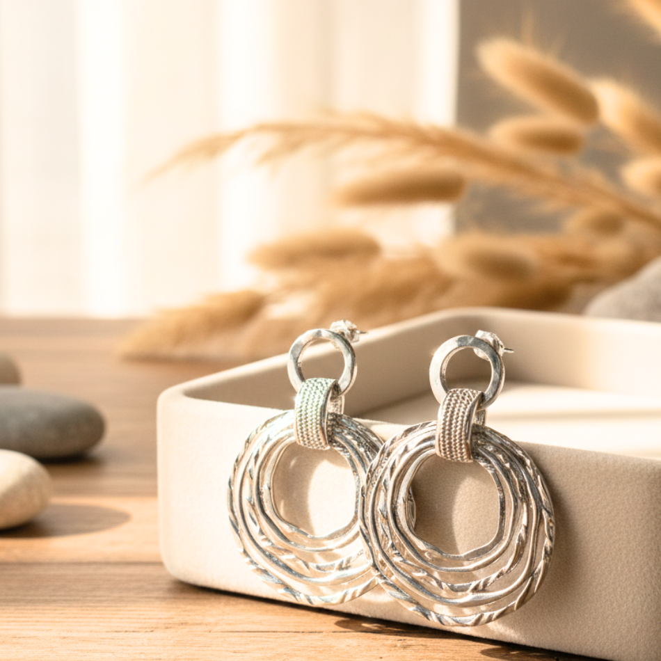 Boucles d’oreilles argentées entrelacées Apportez une touche d’élégance et de modernité à votre style avec...