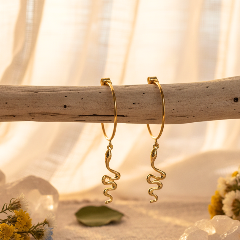 Boucles d’oreilles créoles dorées serpent – Bijoux acier inoxydable femme style bohème chic