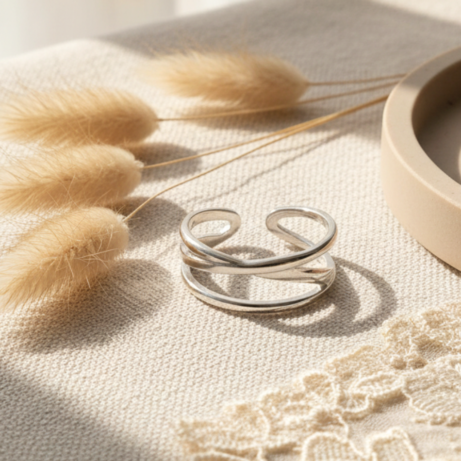 Bague croisée ajustable femme – Acier inoxydable argenté
