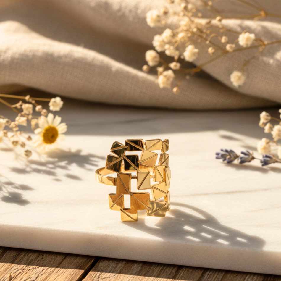 Que ce soit pour un anniversaire, une fête ou un simple plaisir personnel, cette bague dorée graphique séduit par son originalité et son éclat. Livrée dans un joli pochon, elle est prête à offrir.