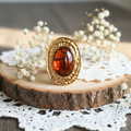 Bague dorée ovale effet ambre – Grosse bague femme ajustable