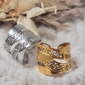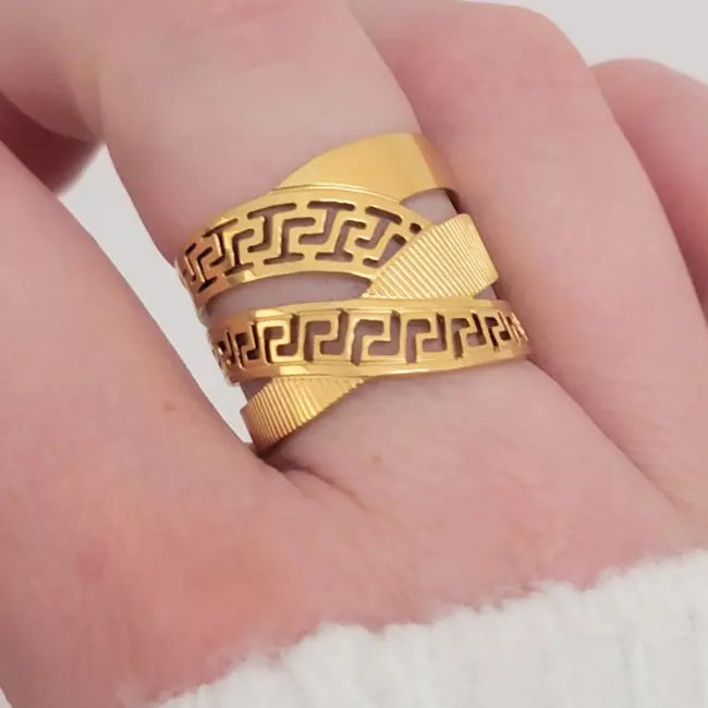 Bague large femme motif grec – Acier inoxydable ajustable doré ou argenté