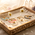 Disponible en turquoise doux, rose peps, ivoire naturel ou noir profond, cette bague colorée s’adapte à toutes vos humeurs. Chaque couleur raconte une histoire et sublime vos tenues, du look bohème chic à l’élégance contemporaine.