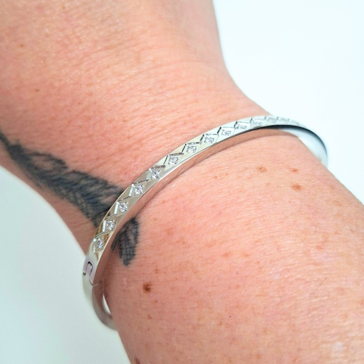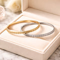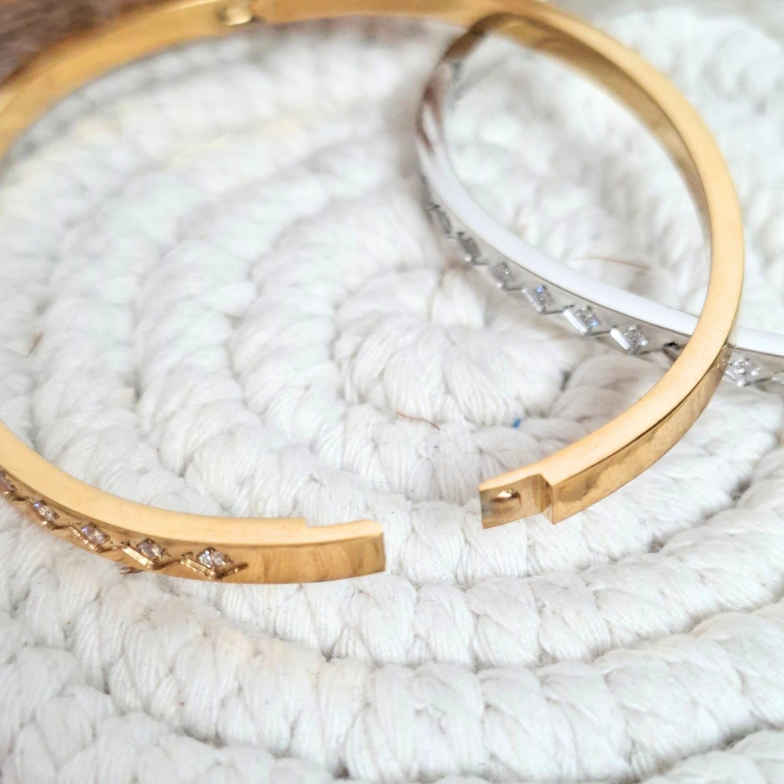 Bracelet jonc ovale fin en acier inoxydable doré ou argenté avec strass
