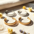 Apportez une touche de caractère et d’élégance à vos tenues avec ces créoles ajourées en acier inoxydable, disponibles en doré lumineux ou en argenté éclatant. Leur design travaillé sublime votre style sans compromis entre originalité et durabilité.
