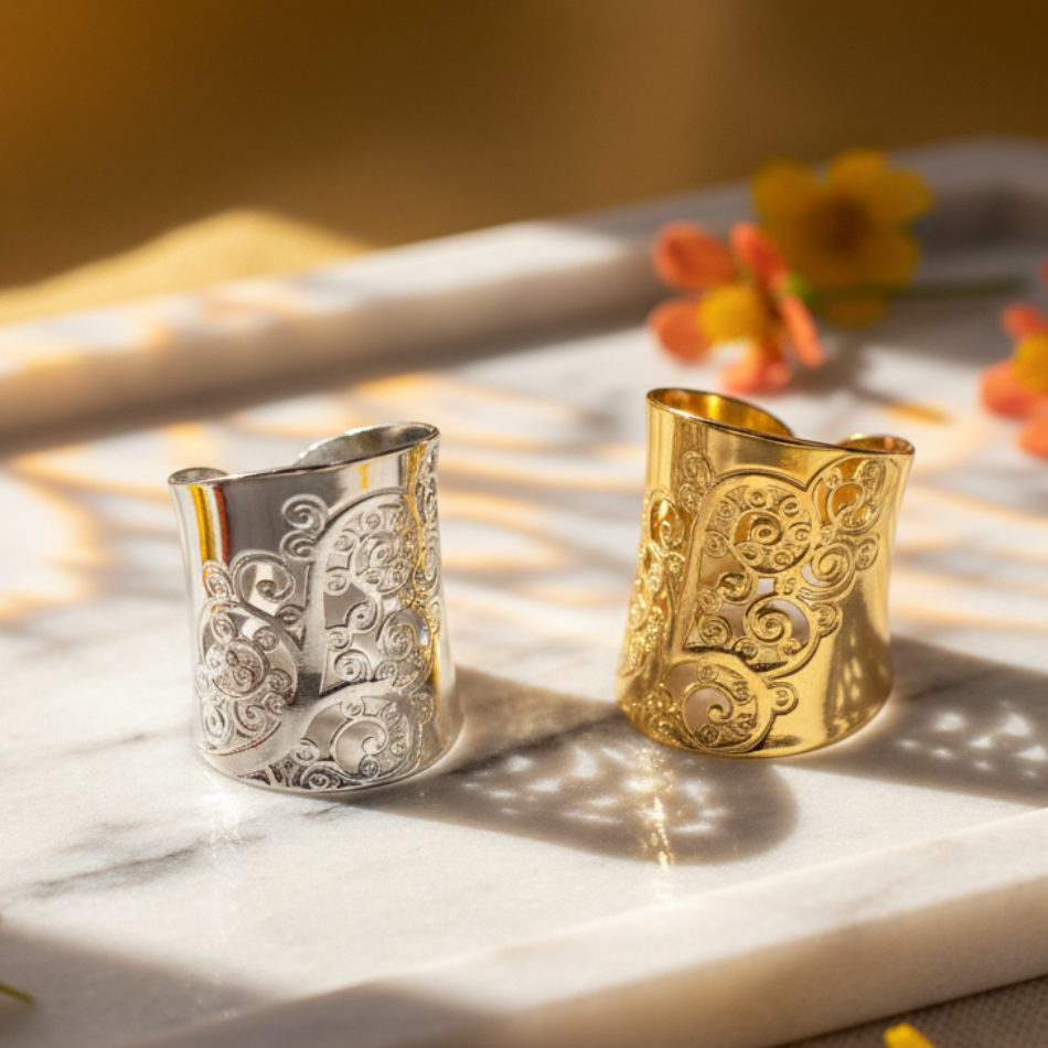 Finitions élégantes : doré ou argenté, poli brillant pour un effet lumineux et raffiné